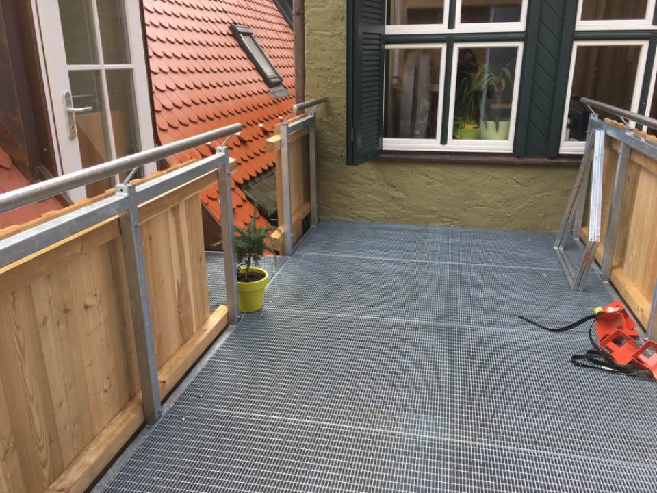 Anbau einer Aufzugsanlage, Kaltwintergarten mit einer Balkonanlage