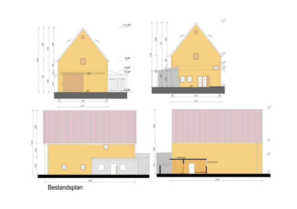 Sanierung und Umbau eines denkmalgeschützten Wohnhauses, Nutzungsänderung einer Scheune in Mietwohnungen, Anbau einer Altane