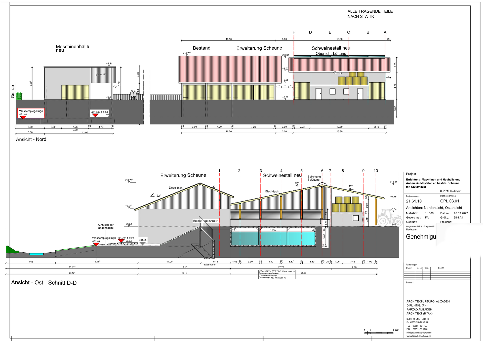 Errichtung Maschinen.- und Heuhalle und Anbau ein Maststall an besteh. Scheune mit Stützmauer
